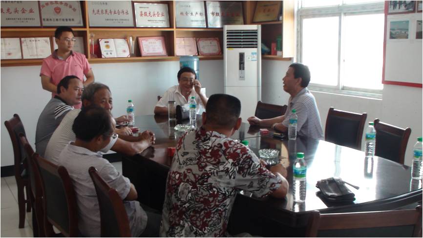 在结束了对漳河一带的水利工程调研后,28日下午,中心颜主任与朱主任、徐主席及当地龙头企业代表人进行会议。会上繁昌县农委朱主任和徐主席结合当地情况,提出了繁昌县现代化农业发展的大体思路。