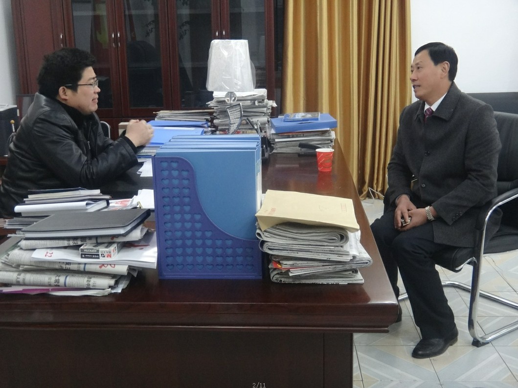 迎河镇党委书记李书记在办公室热情接待颜主任一行