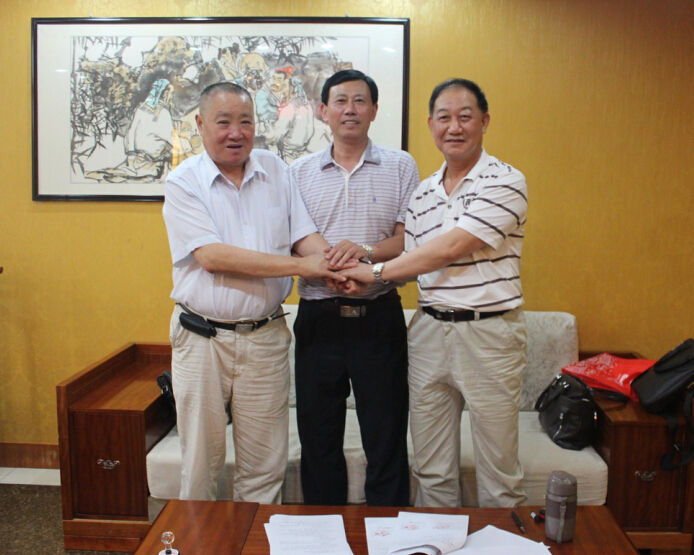 协议签订后一行愉快合影留念(左起原万院长、颜主任、李总经理)