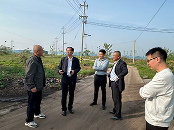 颜主任(左一)同王县长(右一)在徽文化园调研
