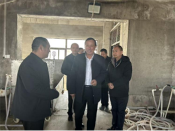 颜主任(右二)一行到孟集镇调研参观大鹅禽业养殖基地,陪同调研的有孟集镇党委方书记(右一),陪同调研的还有刘院长(左二)